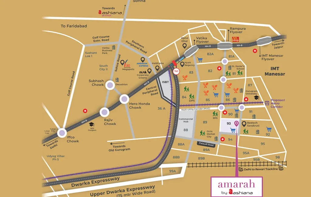 Located in Sector 93, Ashiana Amarah is a luxurious residential development situated on expansive acres of land. The Ashiana Amarah 93 apartments are available in three-bedroom luxury apartments with expansive views of the beautiful surroundings. You are invited to live a beautiful life filled with joy and desire. You will be captivated by the natural light flow and ventilation in every room, which is absolutely astounding. This residential development offers numerous well-planned services and is designed to provide a magnificent living unlike any other. A residential development called Pre-Launch Ashiana Amarah Sector 93, Gurugram, will provide all the amenities you and your family need to live comfortably.